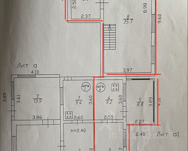 Отдельно стоит отметить общий план дома - он разделен на два примерно одинаковых по площади крупных строения, соединенные между собой галереями на уровнях первого этажа и подвала, что делает его крайне удобным для проживания, например, двух семей. Более подробное описание планировки см. в конце объявления.