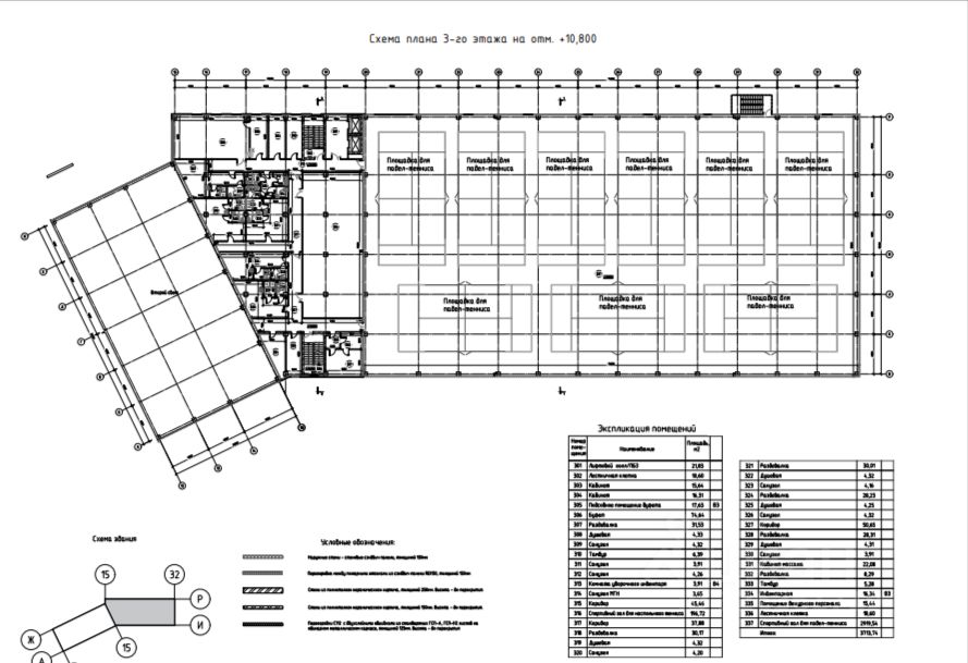 - Высокие потолки. Отдельные помещения с высотой потолка 12 м — идеально для теннисных кортов, паделплощадок и других видов спорта, требующих вертикального пространства.