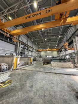 Все для производства и логистики: Собственный кран для разгрузки, мостовые краны грузоподъемностью до 32 тонн внутри помещений, 100 парковочных мест, емкости для очистки воды.
