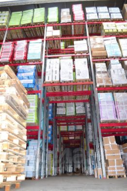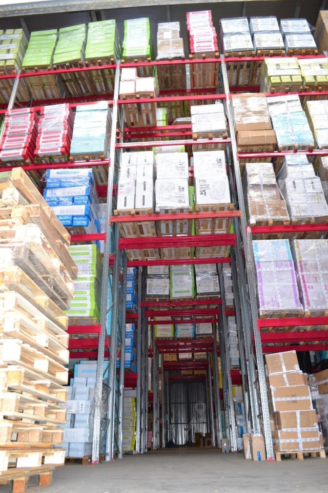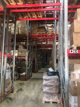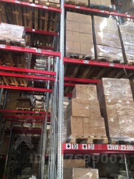 Высота потолков - 12 м. Склад оборудован палетными стеллажами высотой 10,5 м.