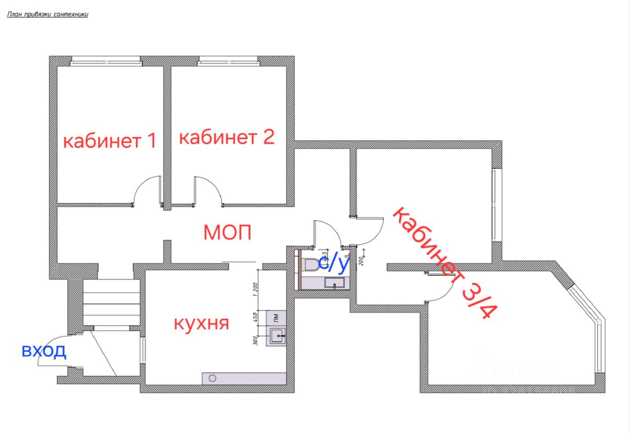 Сдается в аренду помещение свободного назначения (отдельный кабинет 1 на плане).