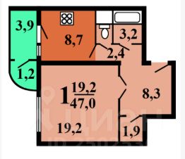 Общая: 43м2