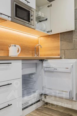 Кухня со всей необходимой техникой (индукционная плита, свч-печь, холодильник с морозильной камерой, вытяжка, чайник)