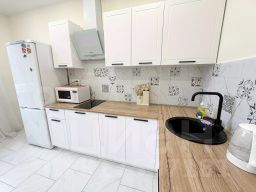 В апартаментах есть двуспальная кровать с ортопедическим матрасом 160200. Имеется бытовая техника: холодильник, плита, микроволновая печь, чайник, телевизор, стиральная машина, фен, утюг. Гостям доступен чай, кофе, цифровое ТВ и Wi-Fi 100+ Мбит/с бесплатно.