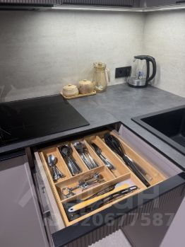 - Кухонная техника: варочная индукционная плита,вытяжка ,микроволновая печь Samsung,духовой шкаф Gorenje, посудомойка,холодильник,тостер,чайник.Набор кастрюль,ножей,вилок,ложек и однотонной посуды.Кухонные полотенца.