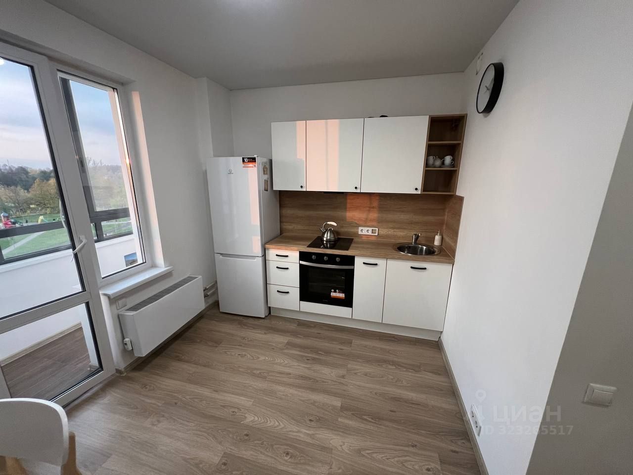 - Кухня: уютная светлая со всей необходимой техникой и мебелью: индукционная плита, духовой шкаф, вытяжка, холодильник с морозилкой, стол и стулья.