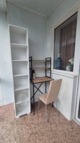 Большая застекленная лоджия, окна которой утопают в зелени и примыкают к кухне, где можно организовать кабинет (тому работает на удаленке) или  удобно устроившись  выпить ароматный кофе  с печенькой провожая уходящий день или  в чайной церемонии подводя его итоги ...  .