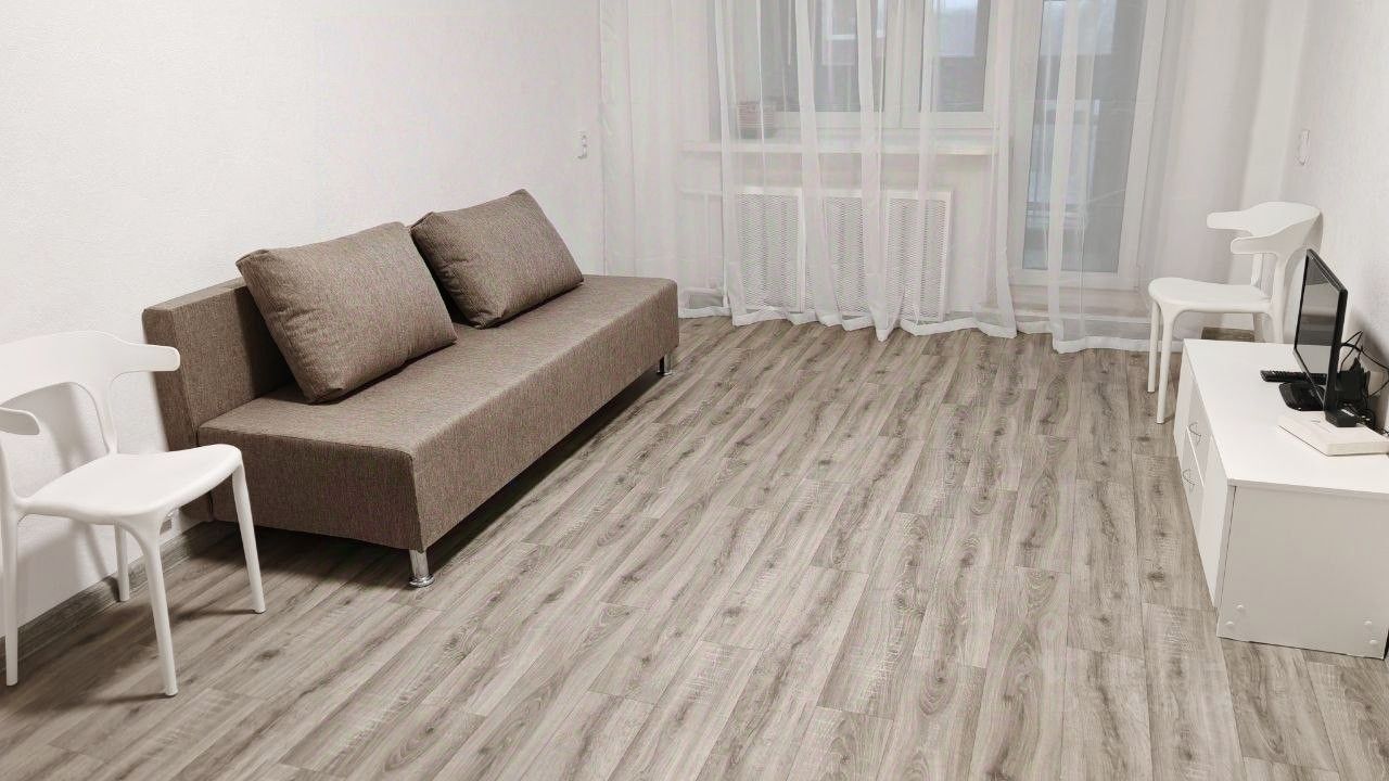 Только что закончил ремонт: новые обои, полы, кухонный гарнитур, бытовая техника, мебель. Ванна обновлена жидким акрилом - стала лучше чем новая.