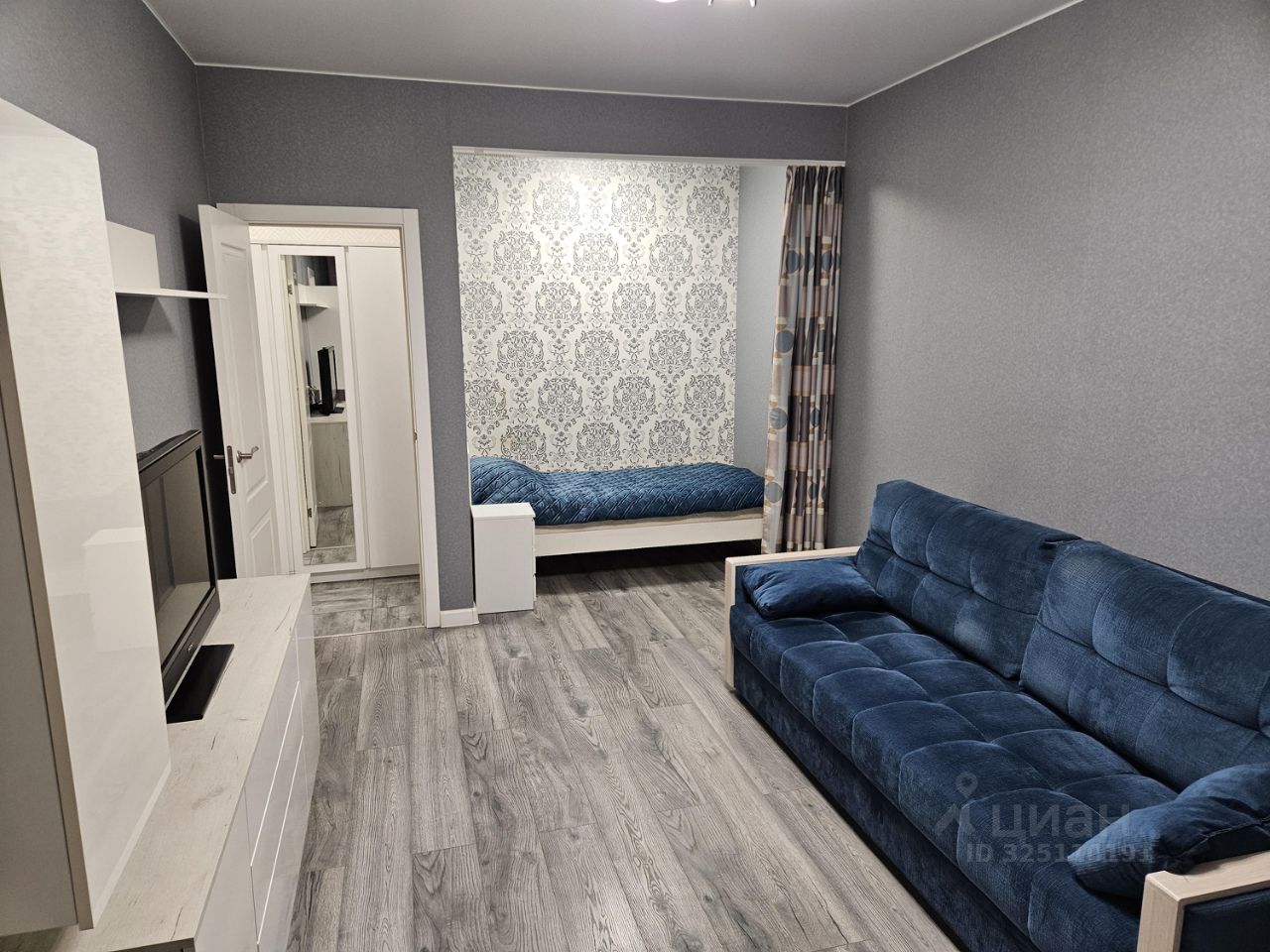 В квартире есть евроремонт, что делает её ещё более привлекательной для проживания. Просторная комната с выходом на балкон обставлена современной мебелью, что позволяет сразу же заселиться и чувствовать себя как дома.