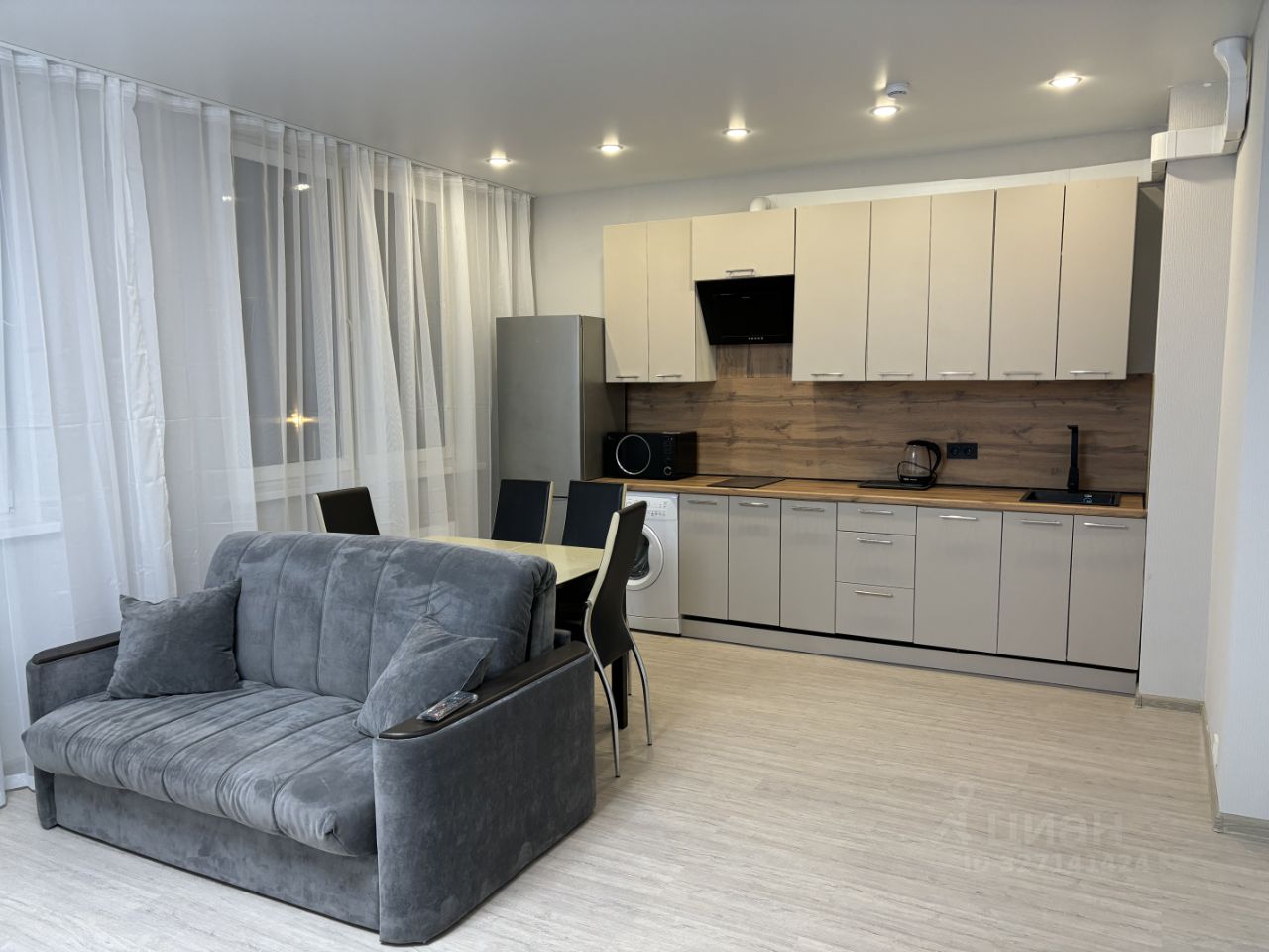 Квартира с мебелью, есть бытовая техника: стиральная машина, холодильник, микроволновая печь, телевизор.