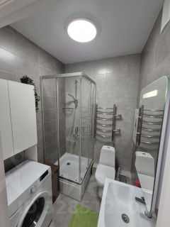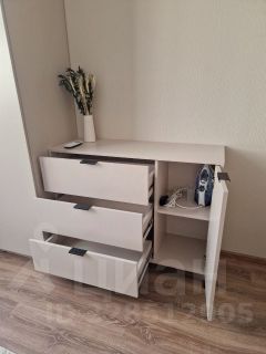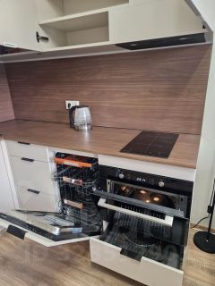 В квартире есть все необходимое для комфортного проживания. Современный евроремонт создает атмосферу уюта и стиля. Компактная кухня площадью 3,1 кв. м оснащена мебелью и техникой: встроенным холодильником, варочной панелью, духовкой с функцией СВЧ, посудомоечной машиной, чайником и кондиционером. В комнате также имеется вся необходимая мебель, а также пылесос, гладильная доска, утюг и встроенная под окном сушилка. Ванная комната оборудована душевой кабиной и стиральной машиной.