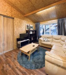 Высокие потолки, экологичная отделка из осб-плит, много общего света, а так же точечная подсветка делают дом особенно уютным.