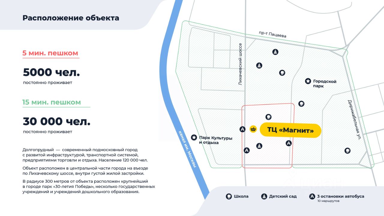 Жилой массив: 35 000 постоянных жителей в радиусе 15 минут пешком