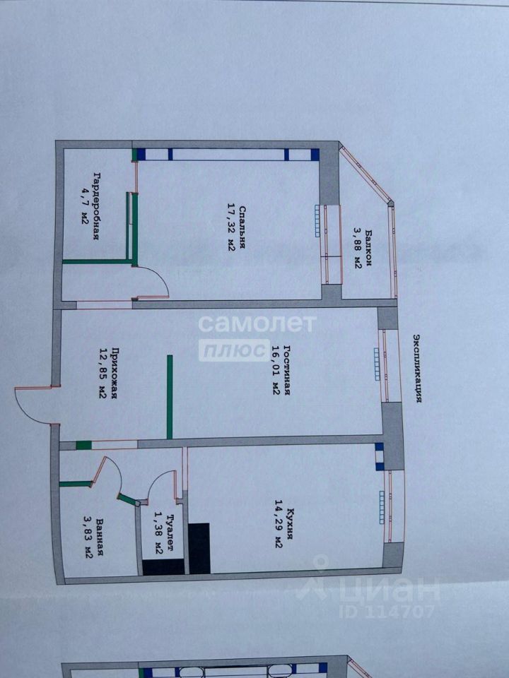 Удобная ПЛАНИРОВКА (почти евротрешка) позволяет комфортно разместиться большой семье или принять гостей.