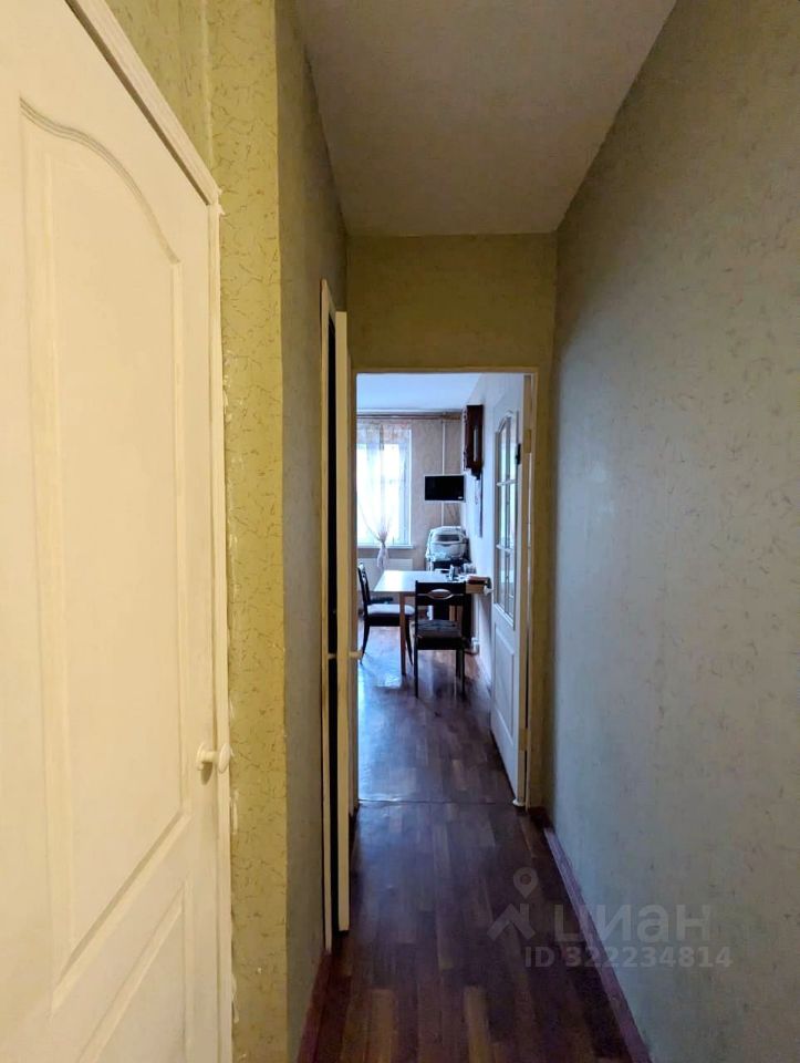 Хорошая планировка, большая кухня, возможность обустройства гардеробной. Квартира требует ремонта.