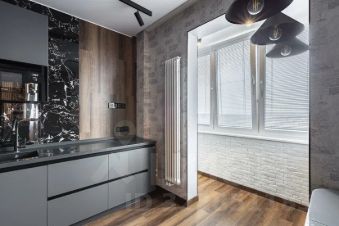 На кухне и на балконе: теплые полы, кондиционер. Кухонный гарнитур с бытовой техникой (холодильник, варочная панель, духовой шкаф, СВЧ).