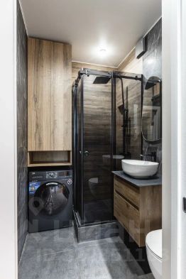 В ванной комнате: дорогая сантехника, душевая кабина, стиральная машина, датчики от протечек обеспечивают безопасность мокрых зон.