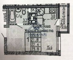Общая площадь 23,8м2, жилая - 15,6м2, кухня-ниша 3м2. С/у совмещенный, что является практичным решением для экономии пространства. Застекленный балкон. Квартира с качественным евроремонтом. Есть все необходимое для комфортного проживания: мебель, техника (стиральная машинка, холодильник).
