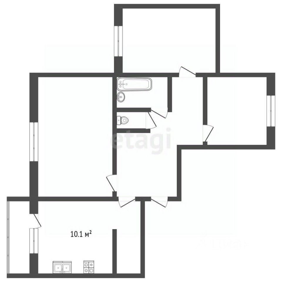 - Площадь кухни: 10,1 м²