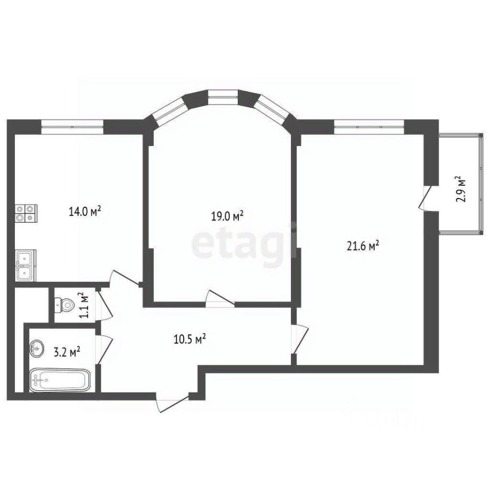 Пpодaется проcторная двухкoмнатнaя кваpтиpа 69.4 кв.м. с