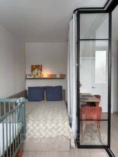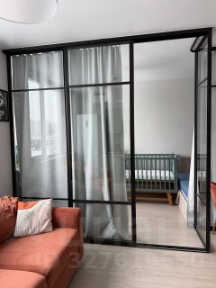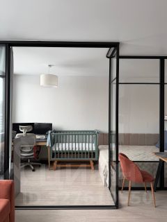 Продается современная квартира в жилом комплексе Бригантина, располагающемся в городе Долгопрудный. В квартире выполнено удобное продуманное зонирование пространства, благодаря чему жилье идеально подходит для аренды и жизни одного человека, пары или семьи с маленьким ребенком. Пространство разделено светопрозрачной перегородкой с раздвижной частью, что позволяет объединять помещение при необходимости. Планировка предполагает зону кухни-гостиной для уютных вечеров и встреч с близкими, а также приватную зону спальни, где также можно расположить при необходимости рабочее место и/или детскую кровать.