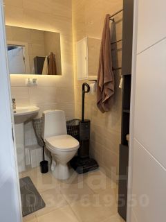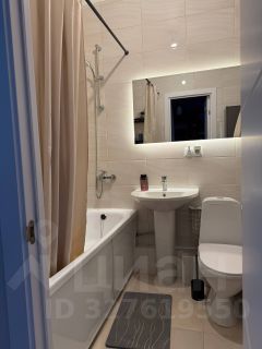 В санузле расположена ванна, раковина, унитаз, а также шкафчик для хранения. Кухонный гарнитур со встроенной техникой (посудомойка, духовка, плита, вытяжка) имеет большую рабочую зону.