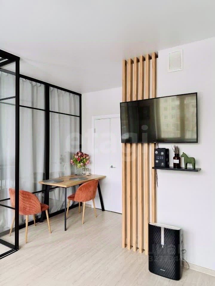 - Общая площадь квартиры: 34.5 кв.м. Планировка предполагает зону кухни-гостиной, а также приватную зону спальни. Имеется удобная гардеробная, оснащенная навесной системой хранения. Кондиционер для комфортного создания комфортного микроклимата.