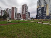 Прогулочная зона с дорожками и скамейками, спортивные и детские площадки - все уже есть и благоустроено.