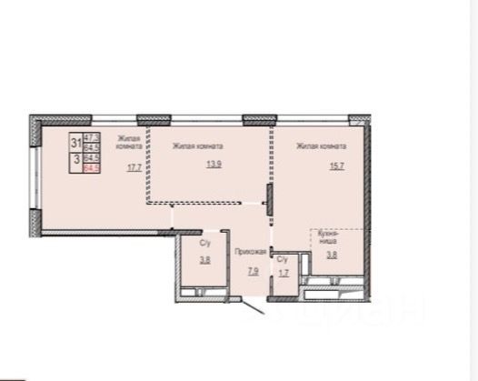 Общая площадь — 64,4 м². Этаж — 5.
