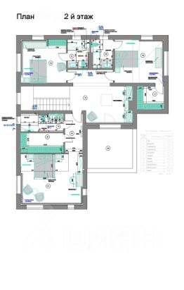 В основном доме 4 спальни с санузлами, кабинет, просторная гостиная, просторные коридоры, на втором этаже — остекление с выходом на террасу с прекрасным видом на участок. Под лестничным пространством — подвальное помещение для хранения вина.