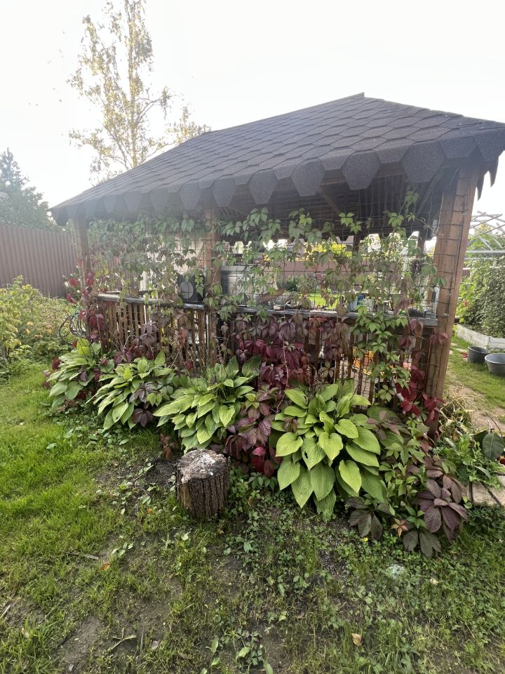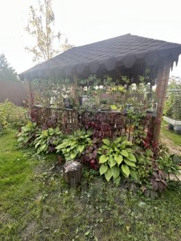 Ровный участок, прямоугольной формы. Новая деревянная беседка для большой компании, дровник и мангальная зона. Участок украшают сортовые пионы , более 30 видов роз , плодовые деревья и ягодные кустарники, ровный , красивый газон. Основательный забор на бетонном фундаменте высотой 230 см. Откатные ворота и зона парковки.