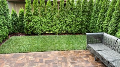 - Зона отдыха с туями по периметру