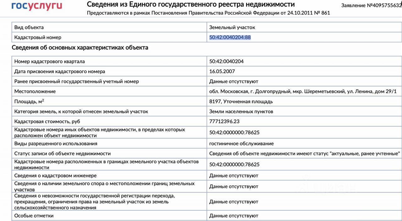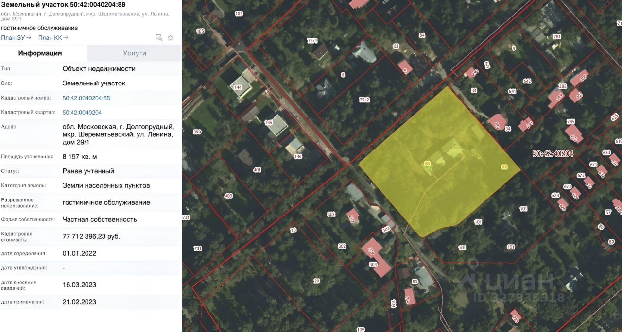 Площадь 8 197 м² (кадастровый 50:42:0040204:88).