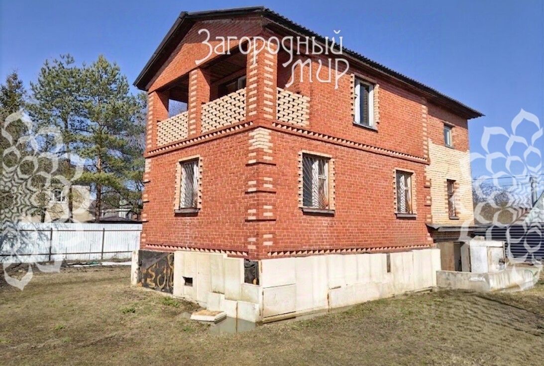 Двухэтажный кирпичный дом 98 кв. с облицовкой кирпичом. Подвал (цокольный этаж) 51,3 кв. м. из фундаментных блоков (ФБС), основание (пол) подвала железобетонные плиты. Перекрытия подвала и 1-го этажа железобетонные плиты, второй этаж деревянные. Кровля шифер. Оконные рамы деревянные. Большой балкон с видом на сад.
