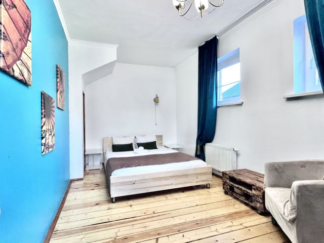 В спальнях ортопедические матрасы, качественное бельё из сатина, телевизоры, комоды и шкафы, журнальные и прикроватные столики.