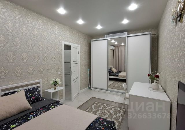 Квартира оснащена вместительными местами для хранения одежды, обуви и т.д., раскладывающимся диваном, кухонным гарнитуром со встроенной техникой, набором посуды, кухонным обеденным столом, холодильником. Фото представленные в объявлении соответствуют действительности.