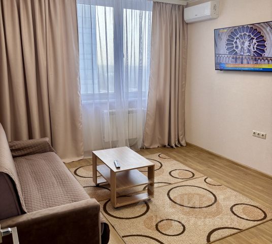 Светлая квартира с кухней-гостиной и отдельной спальней. Полностью укомплектована мебелью и техникой: кухонный гарнитур, варочная панель, духовой шкаф, холодильник, микроволновка, диван, ТВ, двуспальная кровать. Современная отделка, тёплые тона, много света. Заезжай и живи. Подойдёт для 1-2 человек. звонить с 10:00-до 18:00